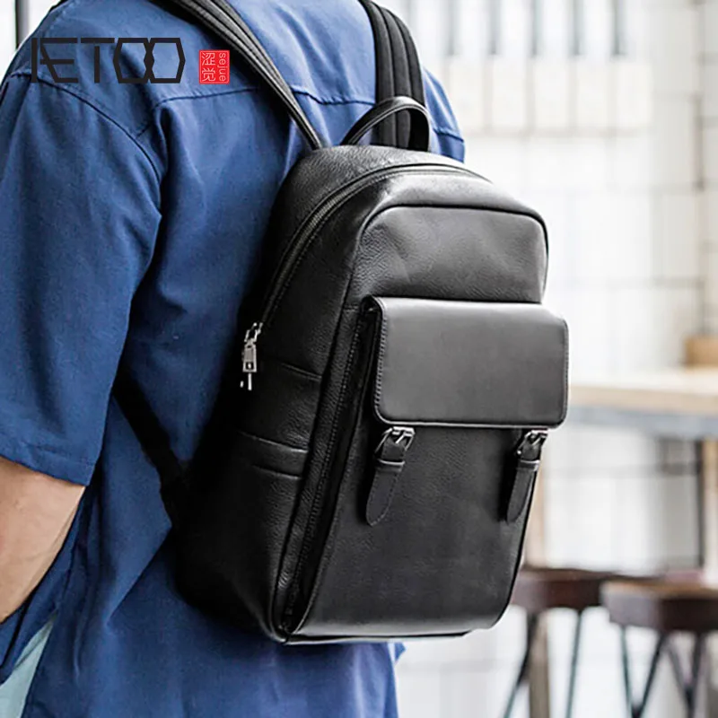 Best Seller AETOO Leather fashion shoulder bag men's business multi-functional backpack simple head leather bac