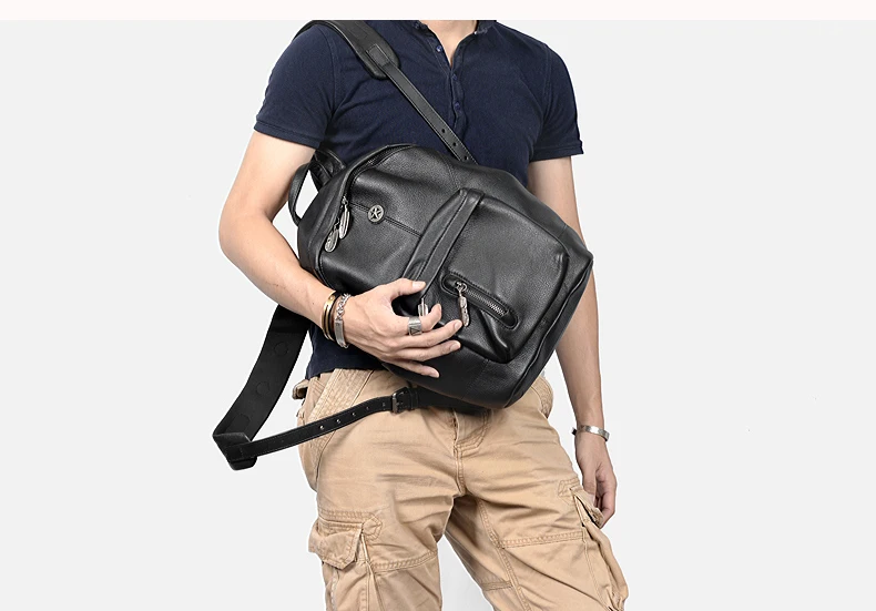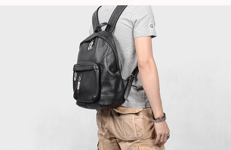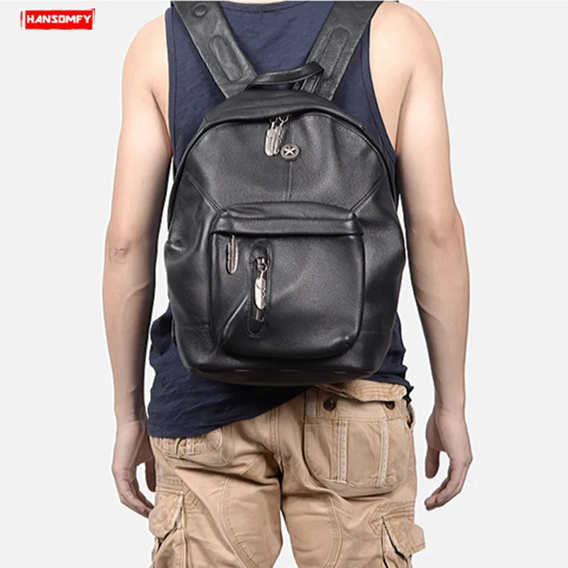 Genuine Leather men backpack top layer cowhide leather computer shoulder bag vintage soft black lea