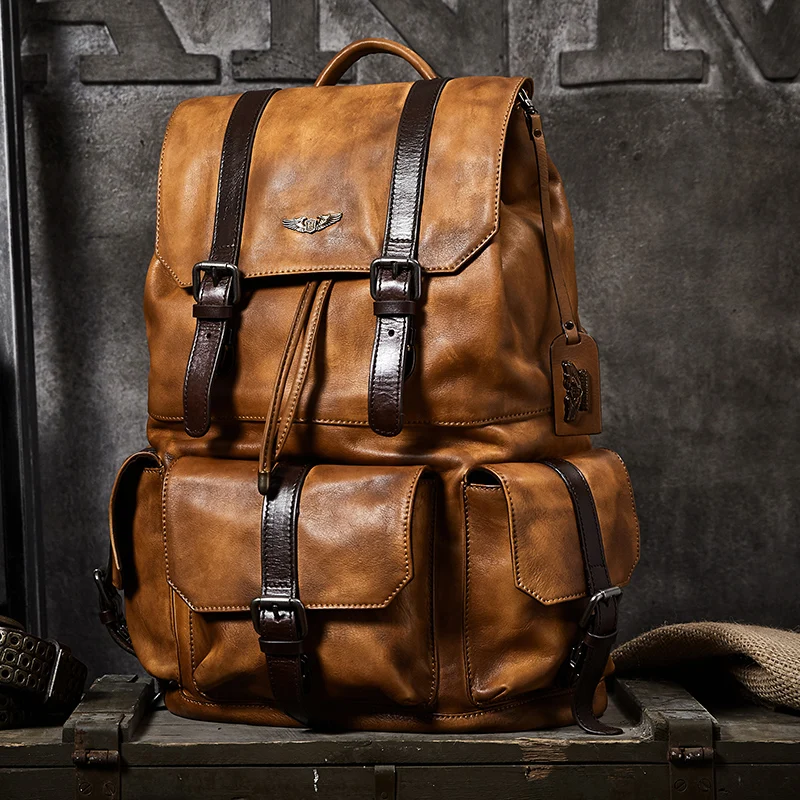 REVIEW TOP SELLER Large capacity Men travel bag mountaineering backpack handmade vegetable-tanned Leather drawstring