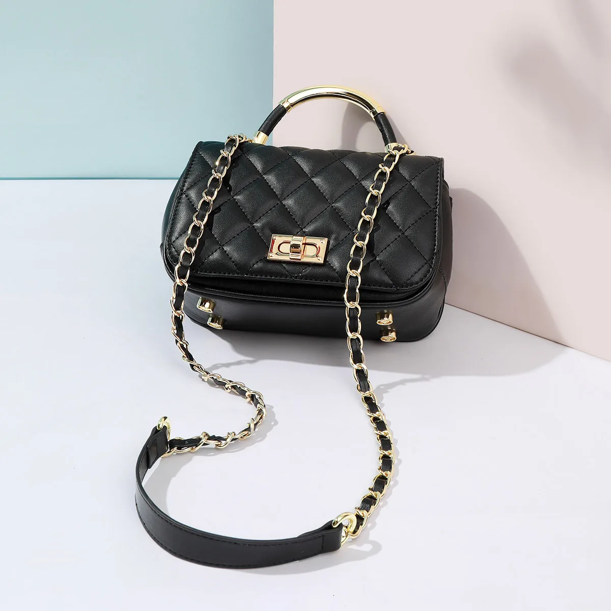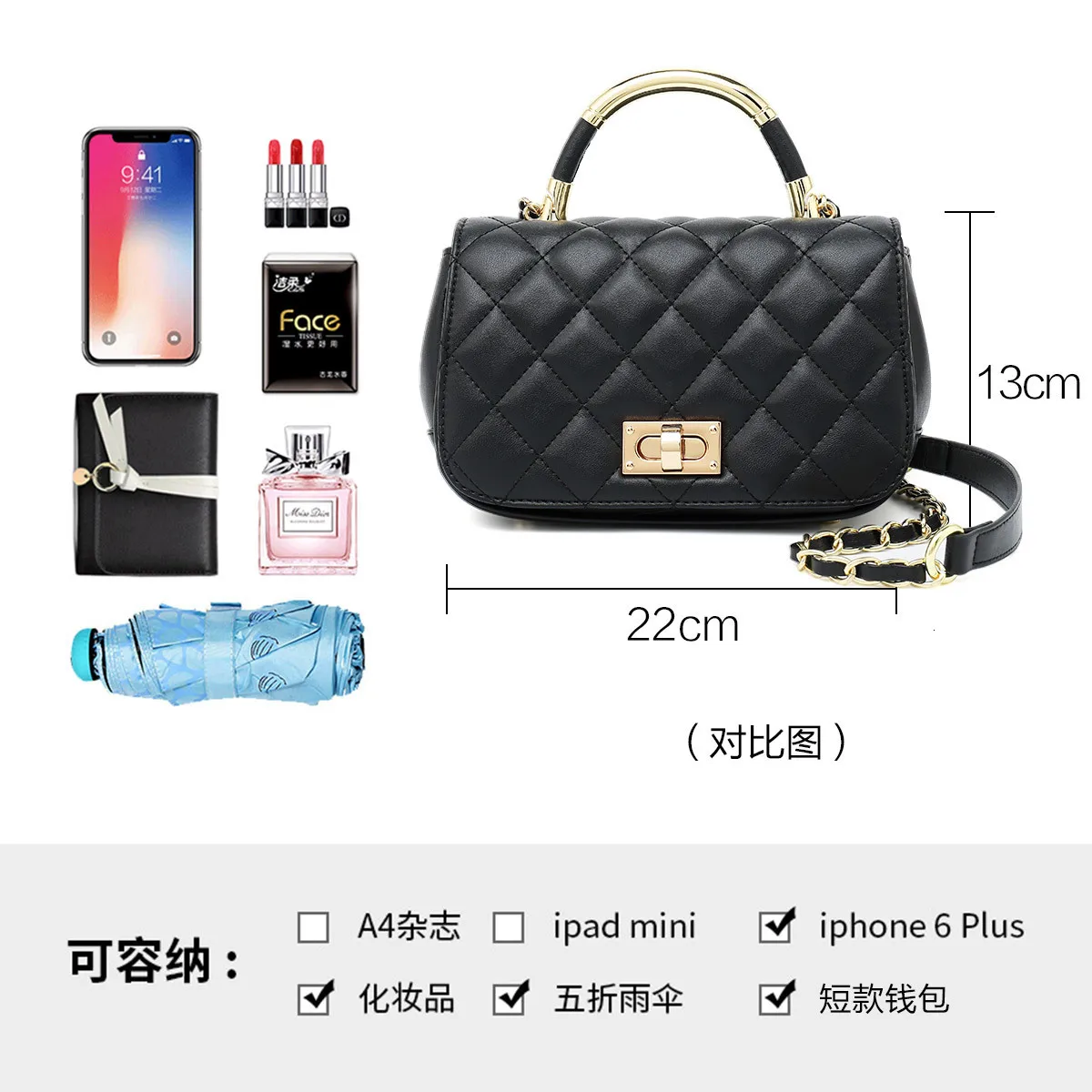 2019 Woman Bag Trend Single Shoulder Small Real Diamond Lattice Chain Package Diagonal Crossbody Ne