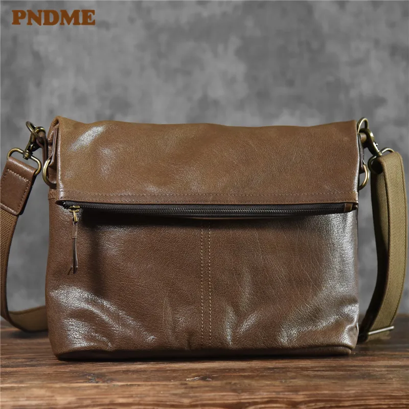 PNDME designer high quality genuine leather men's shoulder bag outdoor casual simple waterproof cow