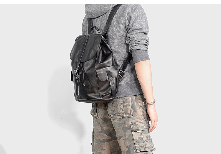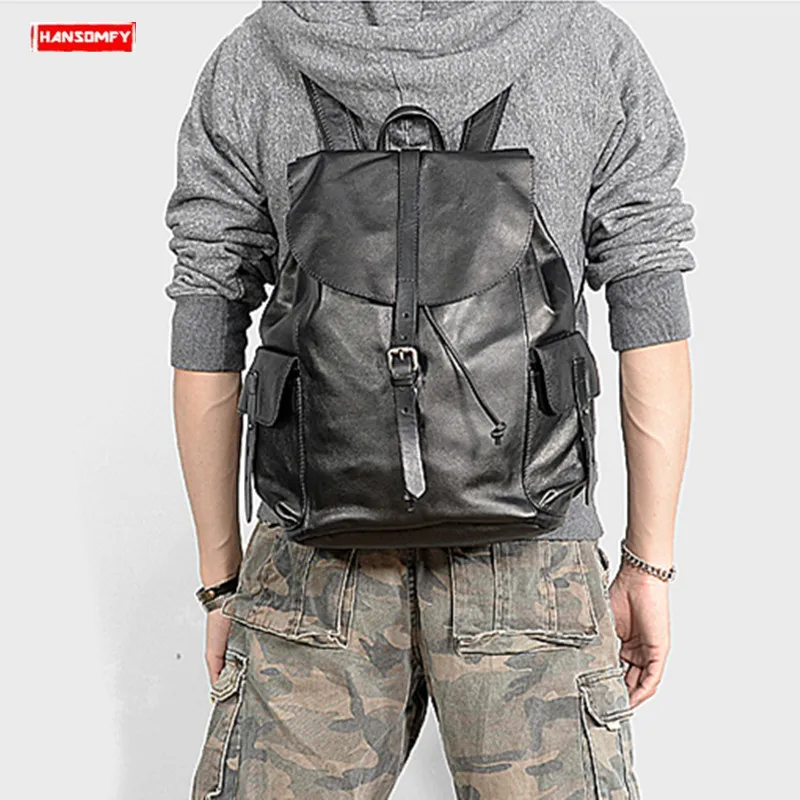 Vegetable tanned cowhide Men backpack black genuine leather shoulder bag British College wind soft