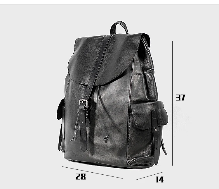 TOP Vegetable tanned cowhide Men backpack black genuine leather shoulder bag British College wind soft